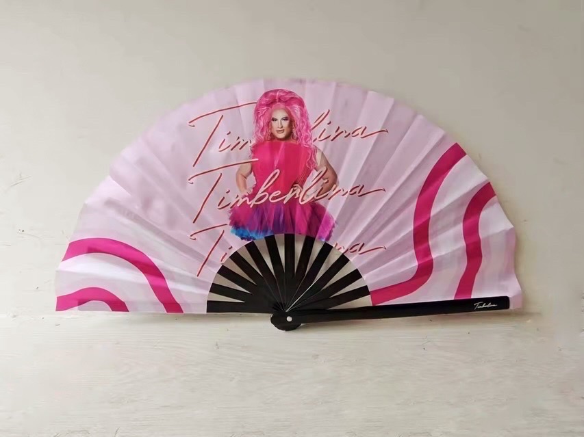 Designed with a bold, eye-catching print featuring Timberlina herself, this fan is both stylish and functional.